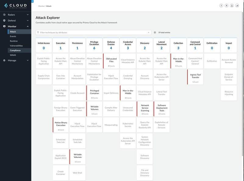 クラウドネイティブ攻撃ダッシュボードの強化:MITRE ATT&CKフレームワークをクラウドネイティブ攻撃ダッシュボードに取り入れ、クラウドネイティブアプリケーションのポートフォリオ全体に関する統合ビューを提供します。特定の脅威シナリオに対する自社の防御機能を評価し、インシデントの対応や復旧に役立ちます。攻撃フレームワークの統合は、パロアルトネットワークスの脅威調査およびコンサルティングチームであるUnit 42によって開発されました。