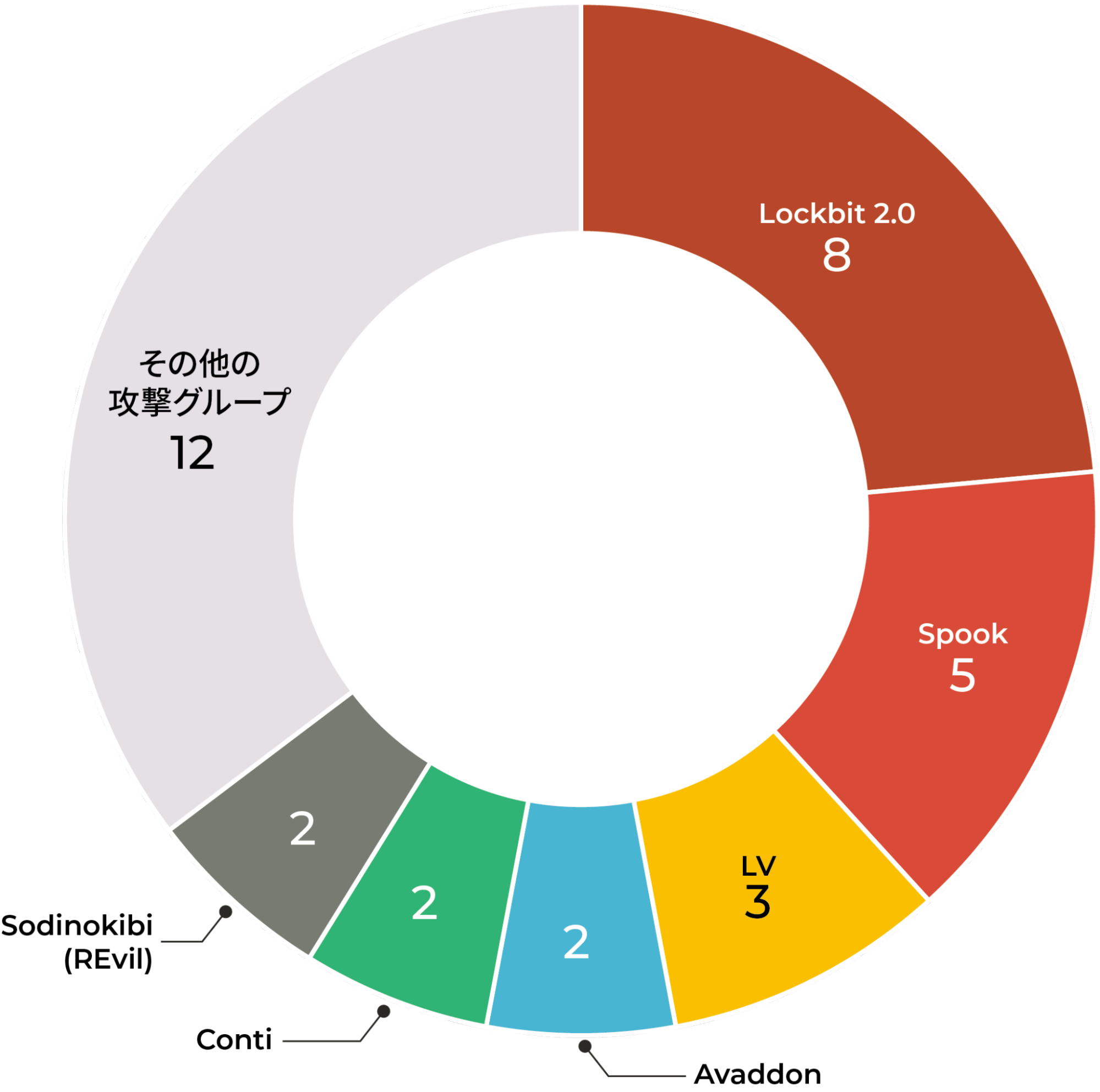 また、2021年に、新たに35のランサムウェアグループが発見されたほか、リークサイトにデータが掲載された被害者である組織の数は、前年より85%増加して2,566に上りました。