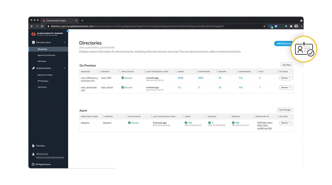 オープンスタンダードに基づくPAN-OSポスト量子VPNでデータを保護します。Cloud Identity Engine はまた、ID プロバイダ間のユーザ情報の集約と同期を支援し、場所やユーザ ID ストアが存在する場所に関係なく、ユーザの一貫した認証と認可を可能にする。これはすべて、すべてのIDプロバイダー間でIDを自動的に同期させるポイント・アンド・クリック構成で行われる。