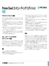 Prisma™ Cloud は、Google Cloud Platform (GCP™)、Amazon Web Services (AWS®)、およびMicrosoft Azure® において効果的な脅威 防御を可能にするセキュリティおよびコンプライアンス サービスです。この革新的で機械学習によって支えられたアプローチによって、 最も細分化されたマルチクラウド環境において、多様なセキュリティ データ セットが相互に関連付けられて包括的な可視性がもたらさ れ、脅威が検出され、迅速な対応が可能になります。Prisma Cloud を利用すると、組織は、パブリック クラウド コンピューティングの 展開において、コンプライアンスを確保し、セキュリティを管理し、セキュリティ運用を実施できます。